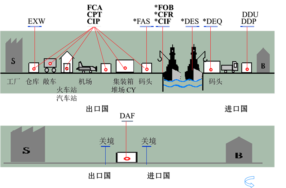 FCA,CPT和CIP与FOB,CFR和CIF的区别