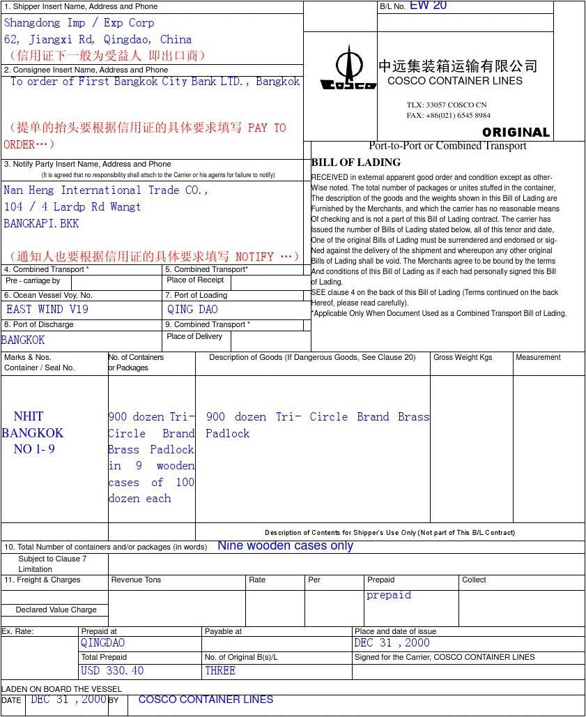 ⦁ A bill of lading doesn't only contain a full description of the goods.