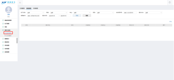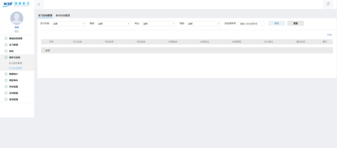 实习总结管理:院系管理员可对学生最终提交的总结报告进行管理查看,并可批量打包。