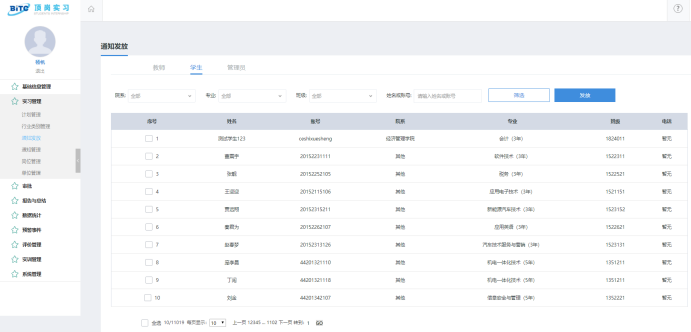 通知发放:可对教师、学生、管理员三个角色指定人员发放通知。