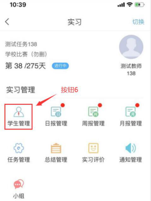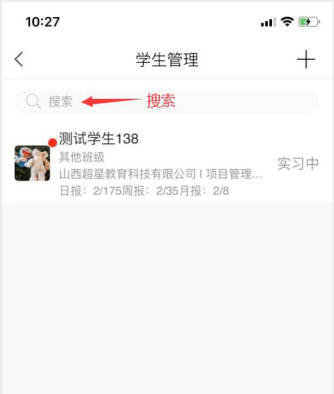 点击学生管理(按钮6),可以查看学生实习名单和状态。点击搜索框输入学生姓名即可搜索出来想查找的学生。