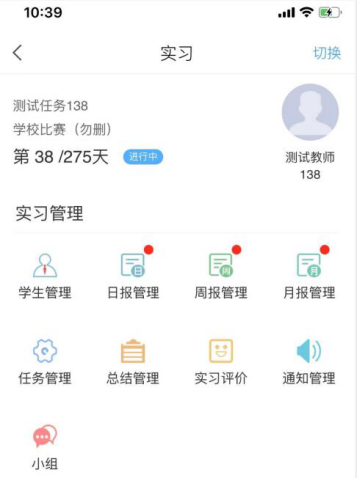 1. 实习管理,包括学生管理,日报管理,周报管理,月报管理,任务管理,总结管理,实习评价,通知管理。如下图。