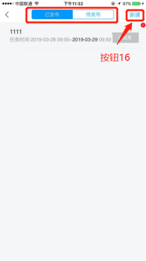 点击任务管理,可以看到已发布和待发布的任务。点击任意一个任务,可以看到任务详情,教师可以选择打回或者通过按钮。注意教师评语不能为空。点击新建(按钮16),即可新建任务。