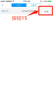可查看已提交和未提交的学生记录。也可以根据日历进行选择日期,点击批阅(按钮15)可以批阅。