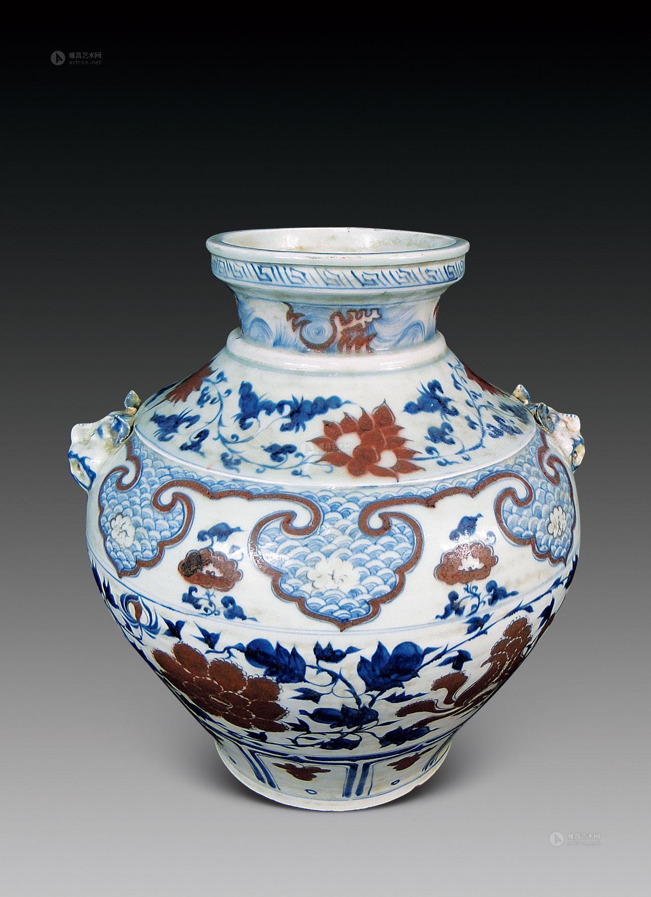 元代后期,出现青花釉里红,又改变了单一青色的装饰。