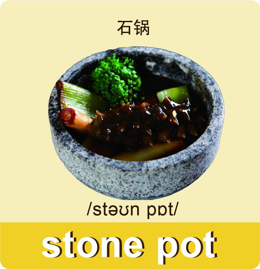 英文及中文菜单皆涉及大量词汇,包含有蔬果、家畜肉食、海鲜、烹饪方式、刀功、烹饪器具、地名(甚至是文化)、方言或音译名等等,有些菜单还会在菜名下方备注其起源、特殊的风味、食用方式、分量以及熟度。本单元我们学习如何将中文菜名翻译为英文。