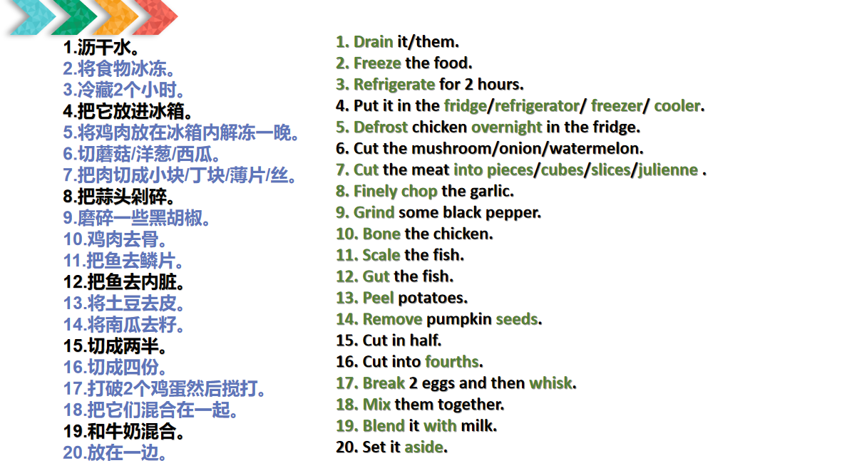 7.把肉切成小块/丁块/薄片/丝。