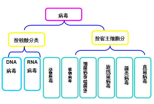 3)一种病毒只含有一种核酸,DNA或者RNA。