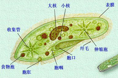 前端口缘有纤毛带,靠纤毛摆动使水形成漩涡,把水中的细菌,有机物颗粒引入胞口。