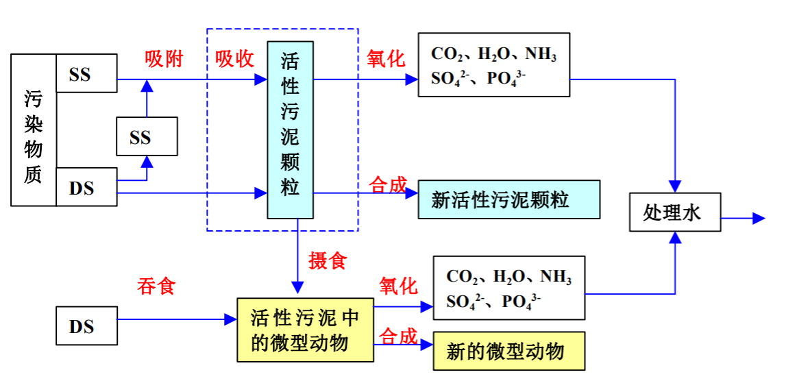 下图为好氧污泥净化废水的作用作用机理图: