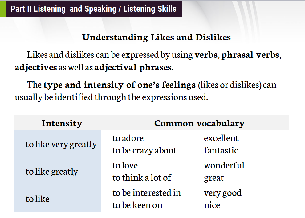 Unit 4 Listening Skills-Understanding Likes and Dislikes