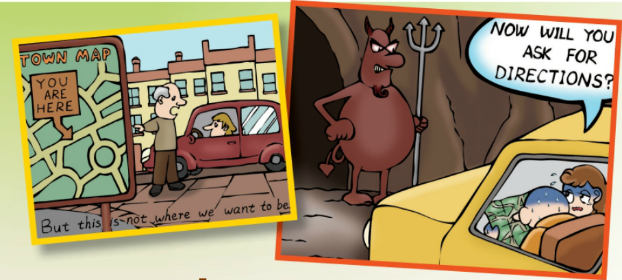 After half an hour he decided to ask somebody for directions. He stopped a man in the street.