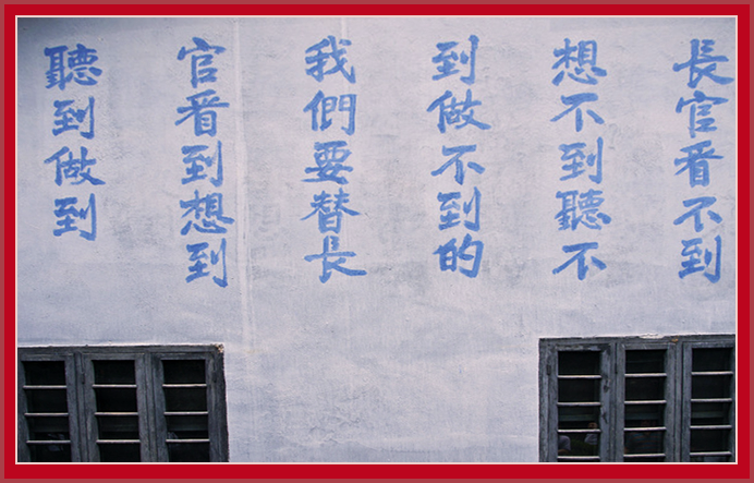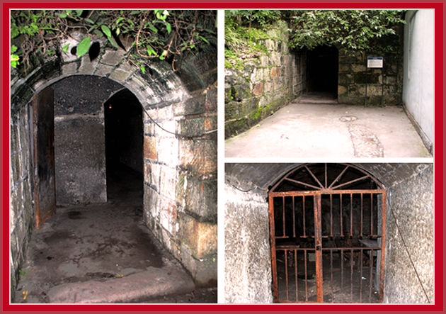 原白公馆大门终日关闭,从侧面一小门进出,原储藏室改为地牢,原防空洞改为刑讯洞。在院内墙上写有“进思尽忠,退思补过”,“正其谊不谋其利,明其道不计其功”等标语。