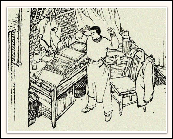 1947年6月,《挺进报》的第二期编印工作在陈然的家里加紧进行;《挺进报》的工作室在楼上陈然住房旁边,原是一间堆放杂物的储藏室。蒋一苇的刻版工作是在白天进行,而陈然的印刷工作是在夜间进行,需要非常的隐蔽。陈然见房间的木板壁有许多缝隙,就用一层厚纸糊住,关上窗户,挂上一床毯子,电灯用黑纸做了一个灯罩,就避免了因通宵开灯而引起人们的注意。为防敌人的搜查,陈然不用油印机,他采用一个简易安全的办法。他用图钉把刻好的腊纸一方钉牢在桌子上,用光滑打磨过的竹片代替滚筒,蘸上油墨在腊纸上刮印,印完后烧掉了竹片,就可以不留下任何痕迹了。重庆的7月,气温炎热。陈然戴着手套精心地印着腊纸,十几张下来,纸上就出现许多小麻点,已字迹模糊,难以辨认了。四张腊纸印完,才勉强凑足六十多份,远远没有达到市委要求的300多份,陈然心里一阵难过。一旁的老苇一面安慰他,一面重新刻写腊纸,直到重新刻三次,终于凑足200多份。第一期《挺进报》出版后,为了提高印刷质量,陈然在小屋里一遍又一遍的试验、改进。由于天气热腊纸易熔化,他跑遍市内各家文具店,买来不同牌号的腊纸、油墨、纸张,反复的琢磨,试验。最后,他终于将一张腊纸印了一千份。1948年1月,陈然接到印毛主席《目前形势和我们的任务》的文章,他连续工作了三个夜晚,才把毛主席的讲话印完。