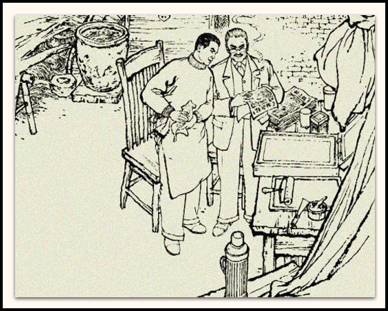 《挺进报》的“机关”就设在南岸野猫溪“中粮”公司机器厂修配车间,也就是陈然的家里。这是一幢一楼一底的房子。楼下是车间,楼上住着陈然的母亲、妹妹、姐夫、保姆等一大家人。这里,地点偏僻,背靠山坡,三面有围墙,厂大门侧对江面,隔江远离市区,人员单纯。楼下车间七、八个工人,由陈然任该车间的管理员,平时全靠他在外接点机修活路,维持大家的生活,工人们都尊称他为“陈先生”。陈然也常常尽自已所能接济工人师傅们。《挺进报》的编、刻、印工作在这里进行,显然就比较合适。