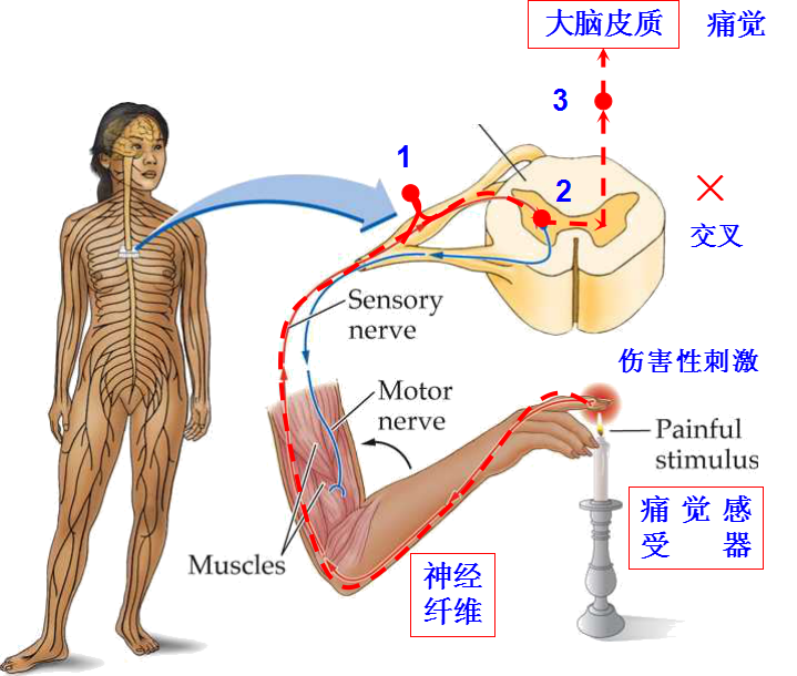 感受器、传入神经、中枢组成感觉(痛觉)传导通路。