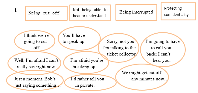 1 剪下以下卡片,两两组对,形成电话沟通中可能出现的问题。