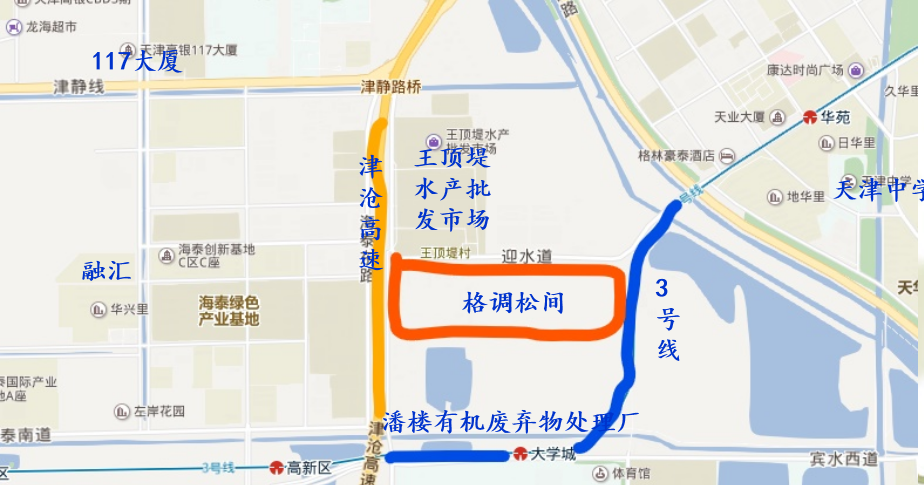 材料三:格调松间,距天津中学最近的新楼盘,仅2.6公里。王顶堤水产批发市场与该楼盘仅一路之隔(迎水道),坐落于格调松间北侧;该市场为综合性市场,不光是水产品,还包括蔬菜水果肉类和副食;价格相对社区市场较为便宜,其营业时间相对集中在凌晨2点到早8点。