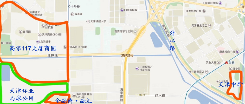 金融街融汇距天津中学5.6公里,紧邻117大厦项目区,距外环路2公里左右。