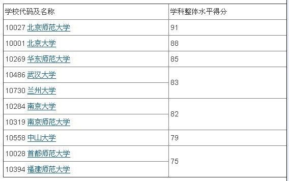 根据教育部学位中心授权发布《2012年学科评估结果》,以下是在地理学领域排名前10名的高校,供大家参考: