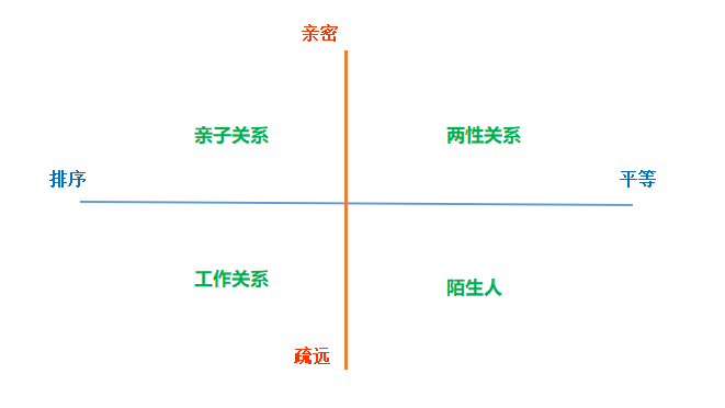 第四象限:平等且疏远,如陌生人关系。