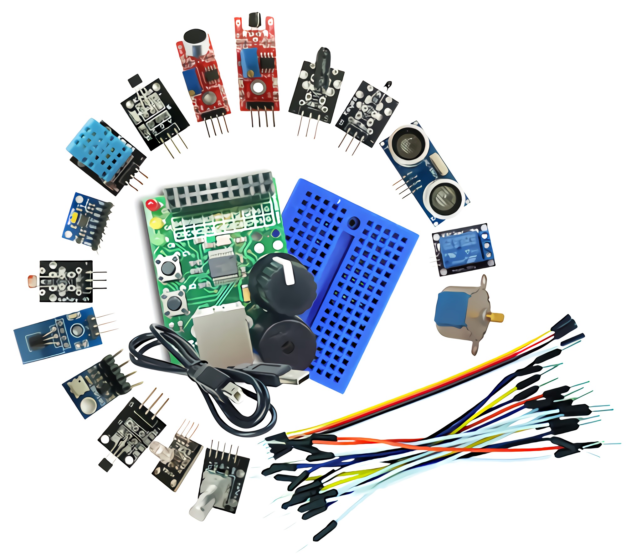 在之前的课程中,我们重点介绍了了开展产品原型设计所需要的资源,当然,树莓派与Arduino等开发板并不是独立存在的,如果希望使用他们完成产品原型的设计,还需要配置相应的元器件。因此,在今天这节课上我们从硬件角度熟悉创客的常用工具。在基于树莓派与Arduino的产品设计中,最常用的硬件是传感器和动作器。