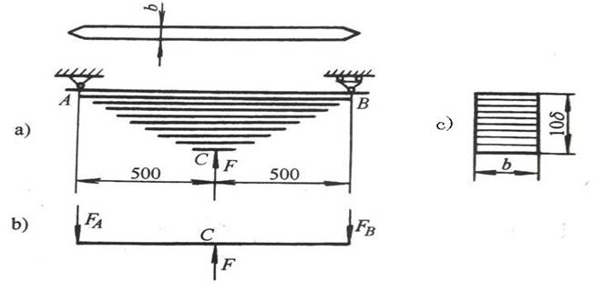 危险截面在中点C。C截面如图8-6c)所示,由十个矩形小截面叠成,其抗弯截面系数为