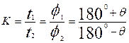 当需要设计有急回特性的机构时,通常根据工作要求, 选定K值,然后根据K值求出角θ,其公式为