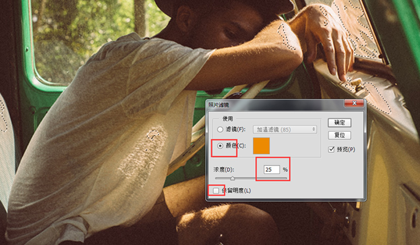 图像/调整/照片滤镜,选择“颜色”,把“保持明度”勾去掉,再调整好“浓度”,具体调多少浓度,看预览。颜色可以自动进行自定义。