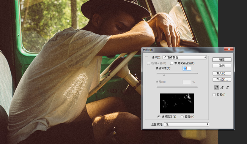 打开素材图片,选择菜单:选择/色彩范围,用取样工具点脸部高光,根据高光范围调整颜色容差。