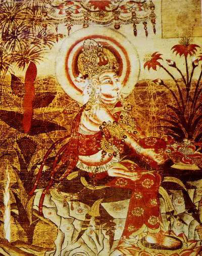 ▲唐(9世纪)水月观音(现存大英博物馆)