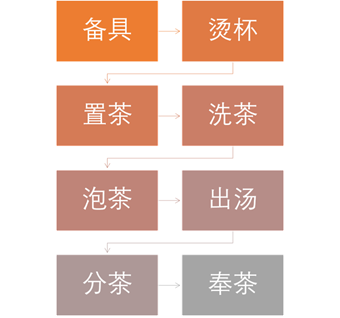 (1)备具:茶盘、盖碗、公道杯、品茗杯(多用白瓷杯或透明玻璃小杯,以便更好地欣赏汤色)、茶叶罐、茶则、茶针、茶巾、烧水炉具(随手泡)。