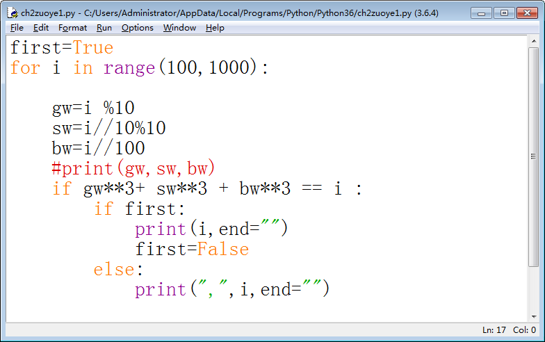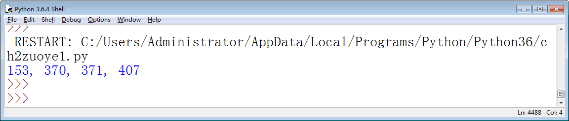 如果直接使用print(i,end=", "),输出的结果: 153, 370, 371, 407,