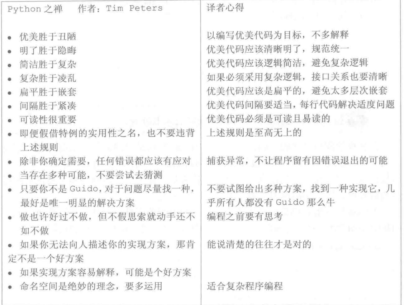 这些文字是由TIme Peters撰写,介绍了编写优美的Python 程序所关注的一些重要原则。教材作者嵩天给出了如下的翻译: