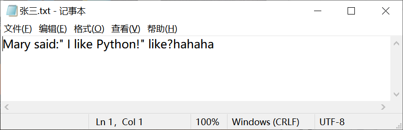 运行代码,在桌面上打开text.txt文件,