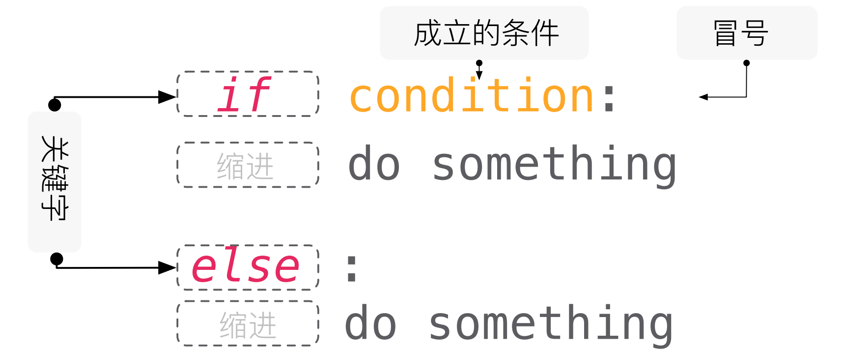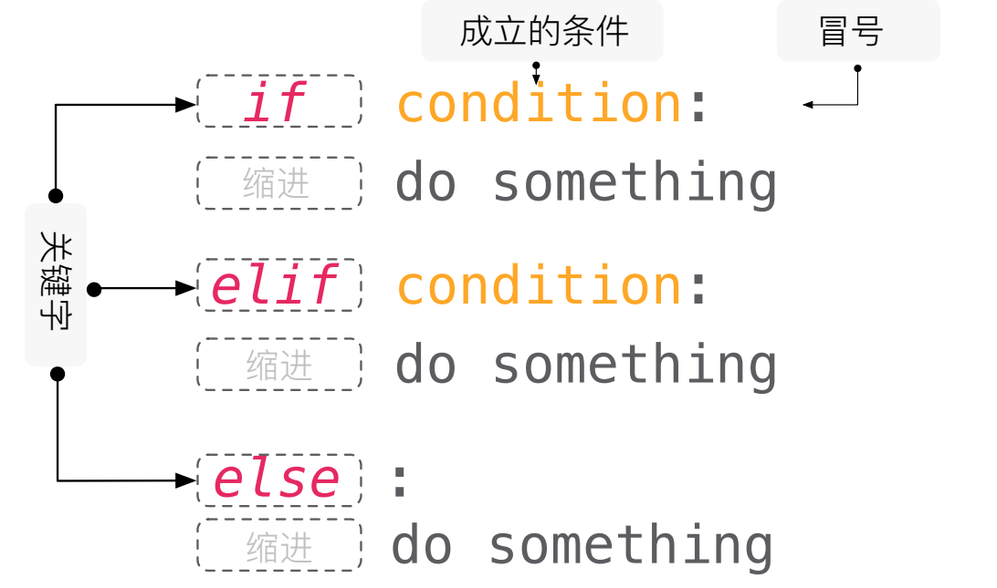 可以通过关系运算符>, <, >=, <=, ==, != 来表达条件, 还可以用逻辑运算符 and, or, not 。