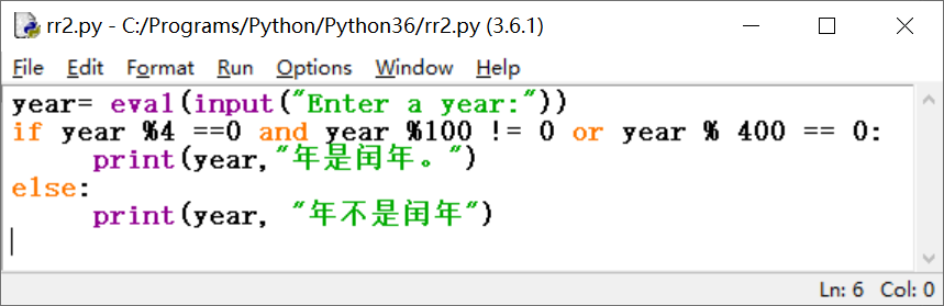 【例1】判断输入的年份是否是闰年。判断某年是闰年的方法是:若该年能被4整除但不能被100整除,或者该年能被400带除,则该年是闰年。