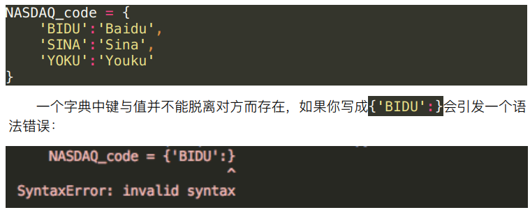 同时,字典是不能够切片的,也就是说下面这样的写法应用在字典上是错误的: