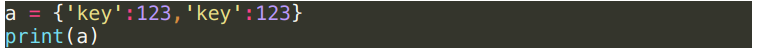 同时字典中的键值不会有重复,即便你这么做,相同的键值也只能出现一次:
