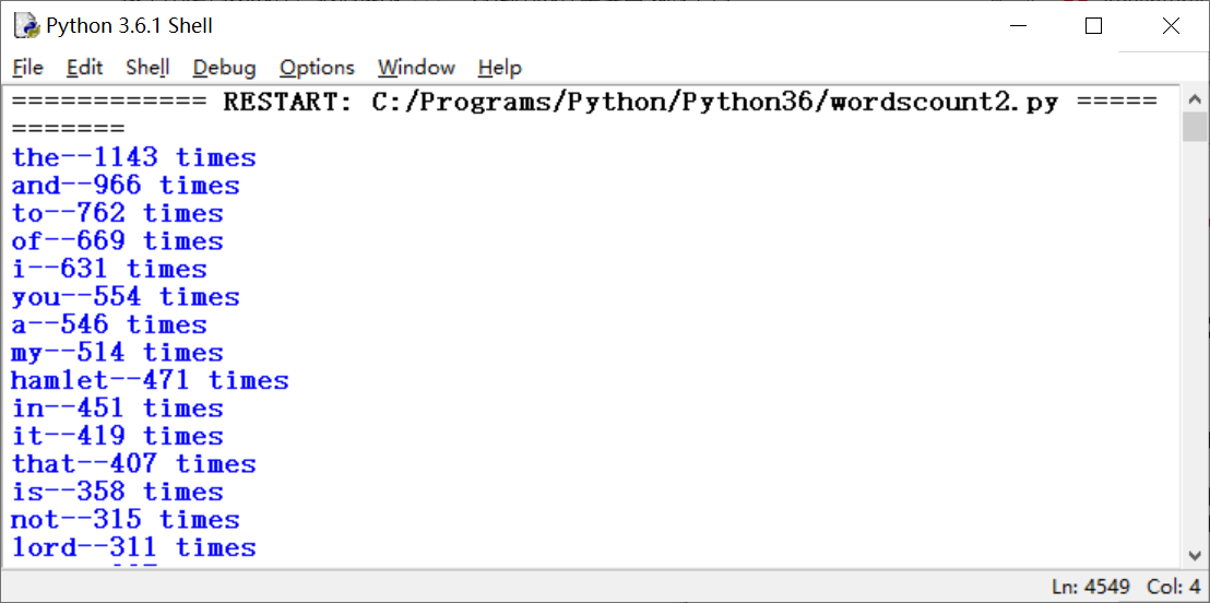 为了深入理解数据结构的使用方法,我们来做一个词频统计(文章中每个词出现的次数)。首先需要下载一个文本(例如:哈姆雷特),请到本平台“资料”下载hamlet.txt,放置到桌面。(注意文件存放路径的表示)