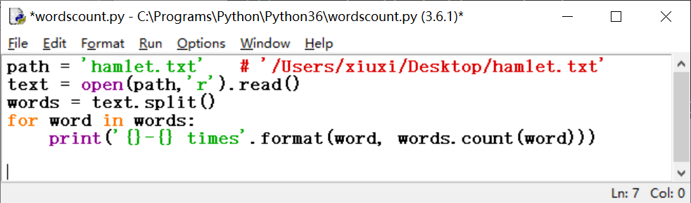counts[word]= counts[word]+1 # 或者 counts[word]+=1