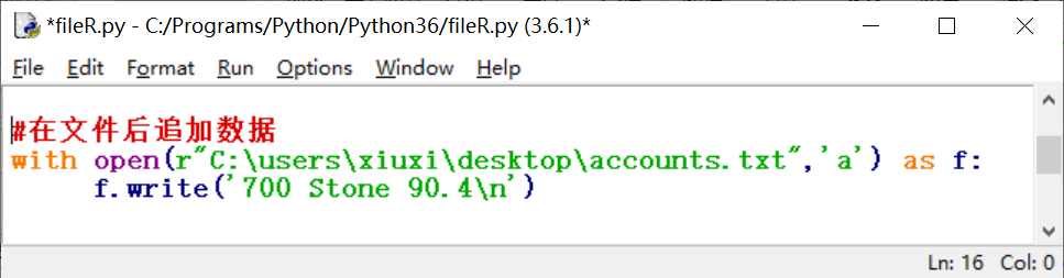 txtFile=open("D:/hqu.txt",'a') #写方式,若文件存在,则是尾部添加,文件不存在则创建