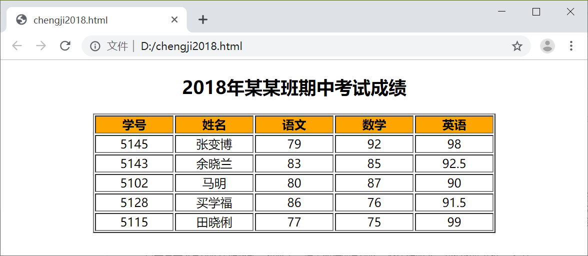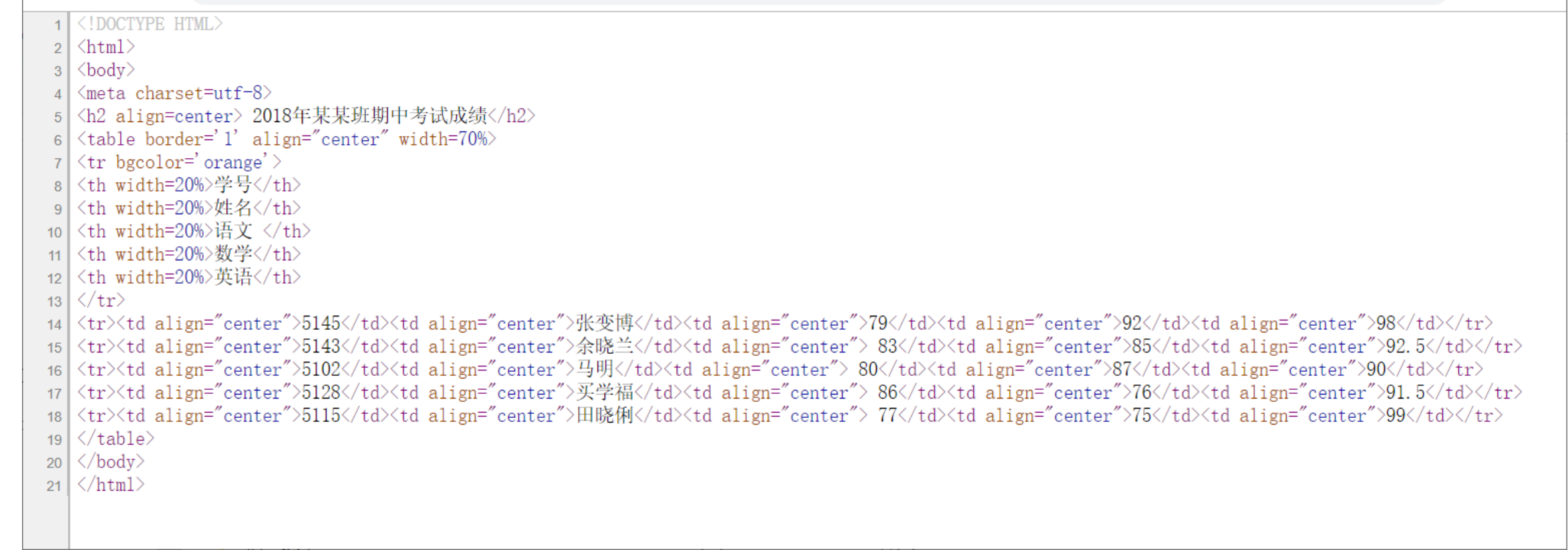 首先看一下HTML代码格式,对应于二维表数据的HTML完整代码如下,