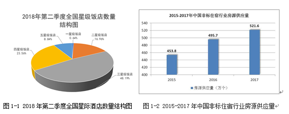2015-2017年中国非标住宿行业市场规模爆发式增长,房源供应量稳步提升,三年间年均增速达5%,到2017年非标住宿行业房源供应量达521.6万个(如图1-2所示, 数据来源:中研普华产业研究院)。