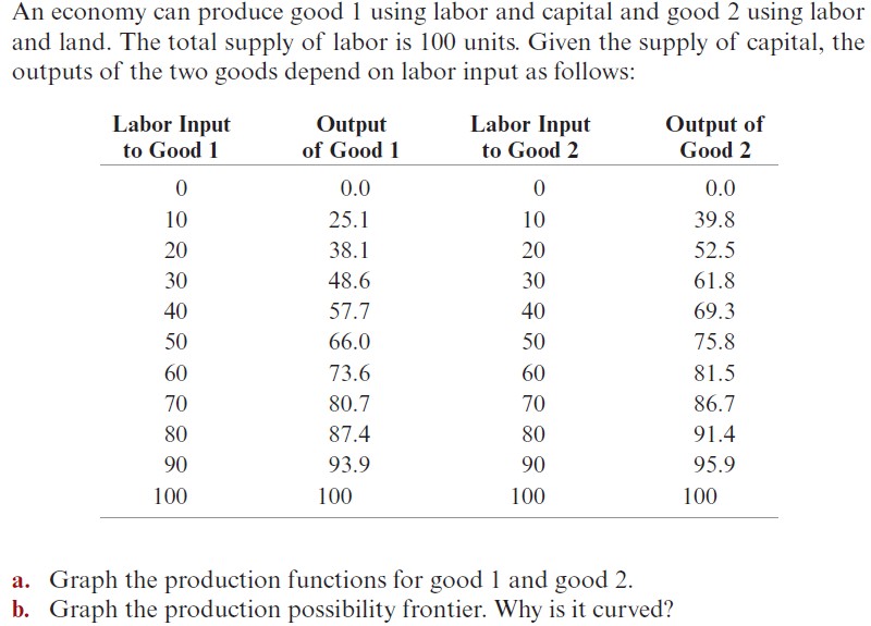 The effect of abundance and factor intensity on the ppf of two nations is shown in Fig.5.2. It is assumed that Nation 1 is labor abundant, so by definition, Nation 2 is capital abundant. Good Y is assumed to be capital intensive in both nations, so by definition, Good X is labor intensive in both nations. The ppf of labor-abundant Nation 1 is biased towards Good X, the labor-intensive product. The ppf of capital-abundant Nation 2 is biased towards Good Y, the capital-intensive product.