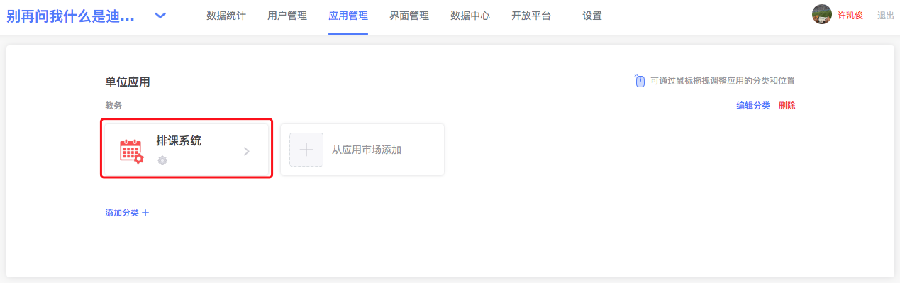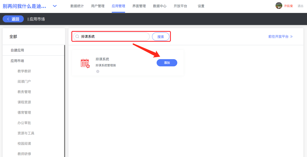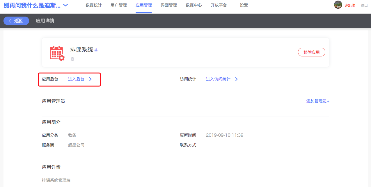 第四步:打开排课系统“应用管理-排课系统-进入后台”。