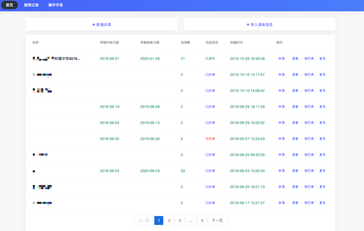 1.“新增排课”用于创建排课项目;