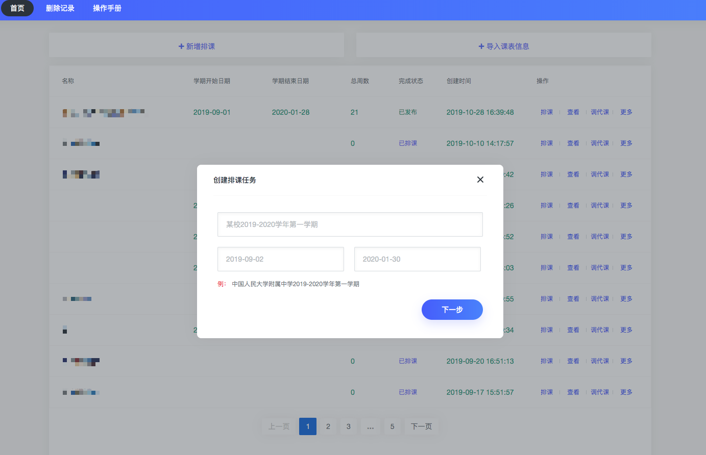 1.点击“新增排课”,输入排课任务名称-选择学期起止时间-下一步