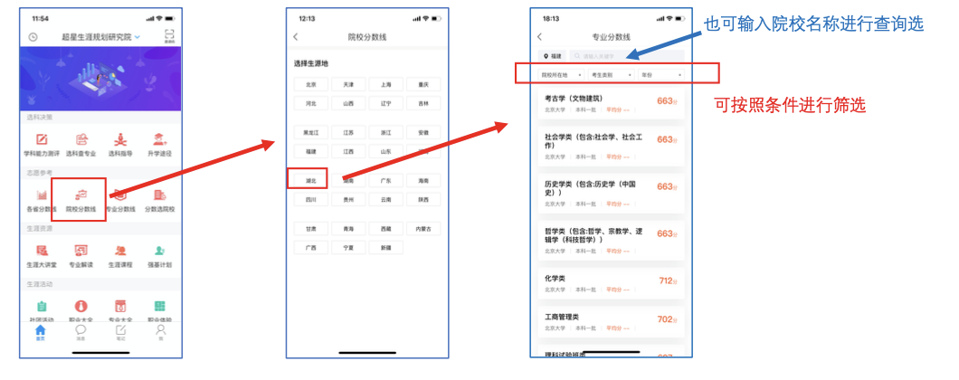 用于查询近三年各高校各省的录取分数线。