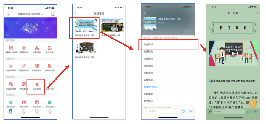 可按照年级观看相应生涯课程内容。